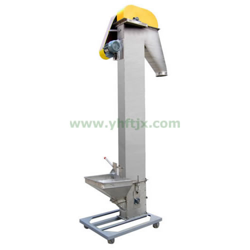 胶带式斗提机输送轻巧、灵便、维修简单方便噪音低,可用于输送密度<1.5粉状或颗粒状的物料输送。链条式斗提机载荷大便于保养,可用于输送量较大、密度>1.5的颗粒状或小块状 物料的输送。