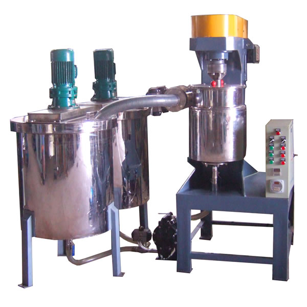 AXH系列循环式搅拌球磨机是一种将搅拌磨机和大容量的预混和缸相结合的机型,利用泵高速循环达到快速的研磨效果及较窄的粒径分布.快速循环的物料通过搅拌球磨室内激烈的研磨介质层,这种现象有利于得到较窄的粒径分布,允许较小的微粒迅速通过,而相对较粗的微粒则要滞留较长的时间,对粗粒有优先破碎效果. 循环式搅拌磨通常用于物料尺寸达到微米级,质量要求高,难于研磨和分散的物料研磨。
